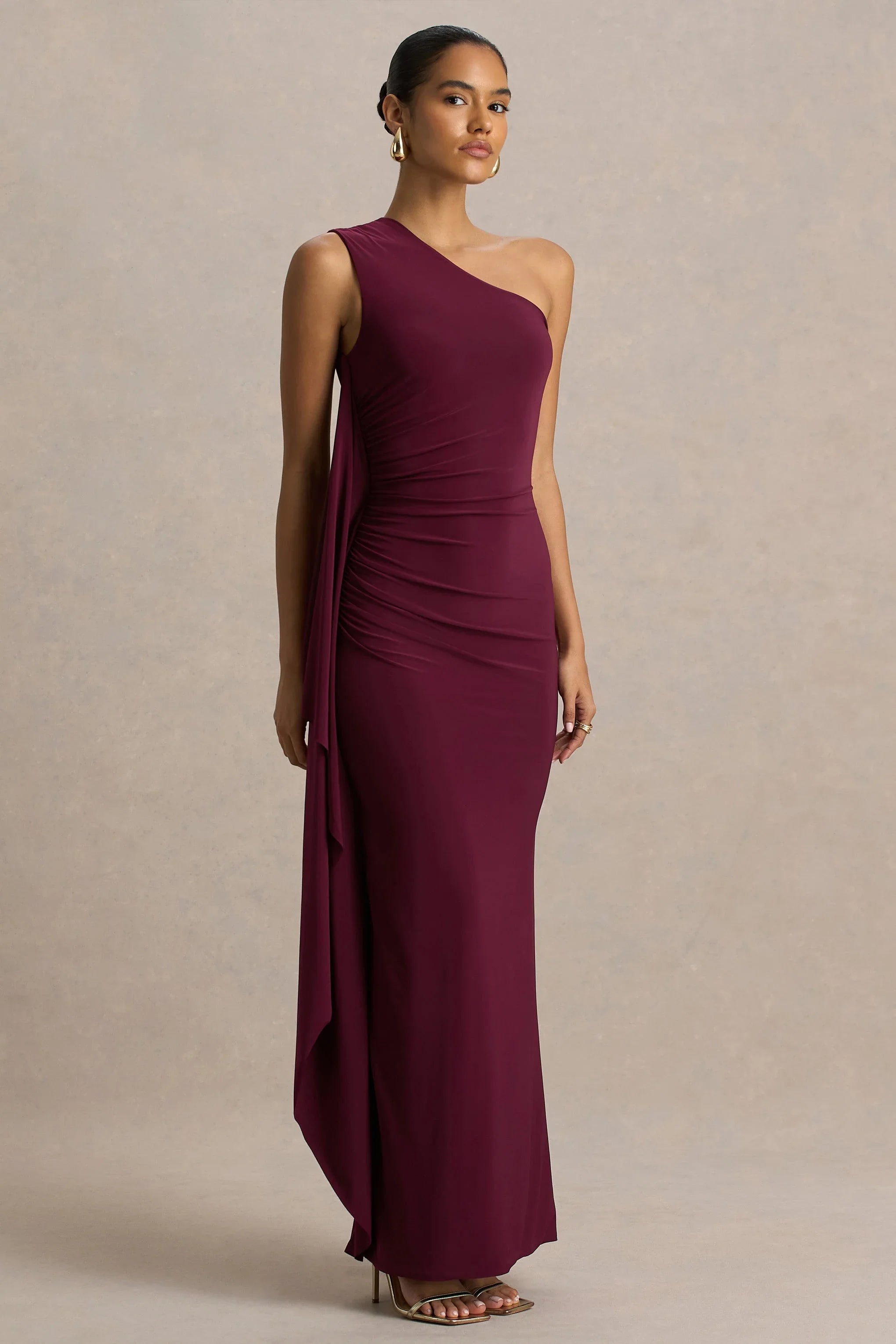 Defined by graceful lines and bold elegance, Adelina is a stunning option for your most special occasions. Crafted from premium jersey in a burgundy hue, this one-shoulder maxi dress exudes modern sophistication. The asymmetric neckline highlights the collarbone, while the expertly draped silhouette cascades beautifully to create effortless movement. Adelina is perfect for a look that radiates contemporary charm.