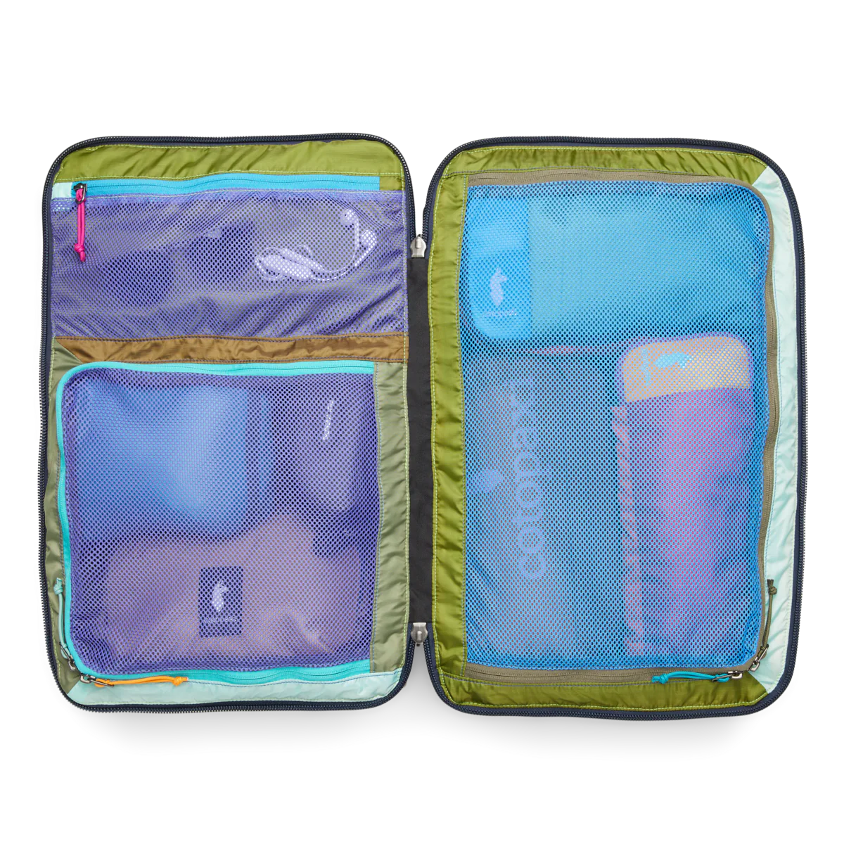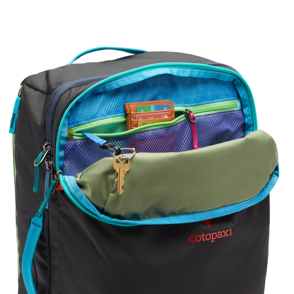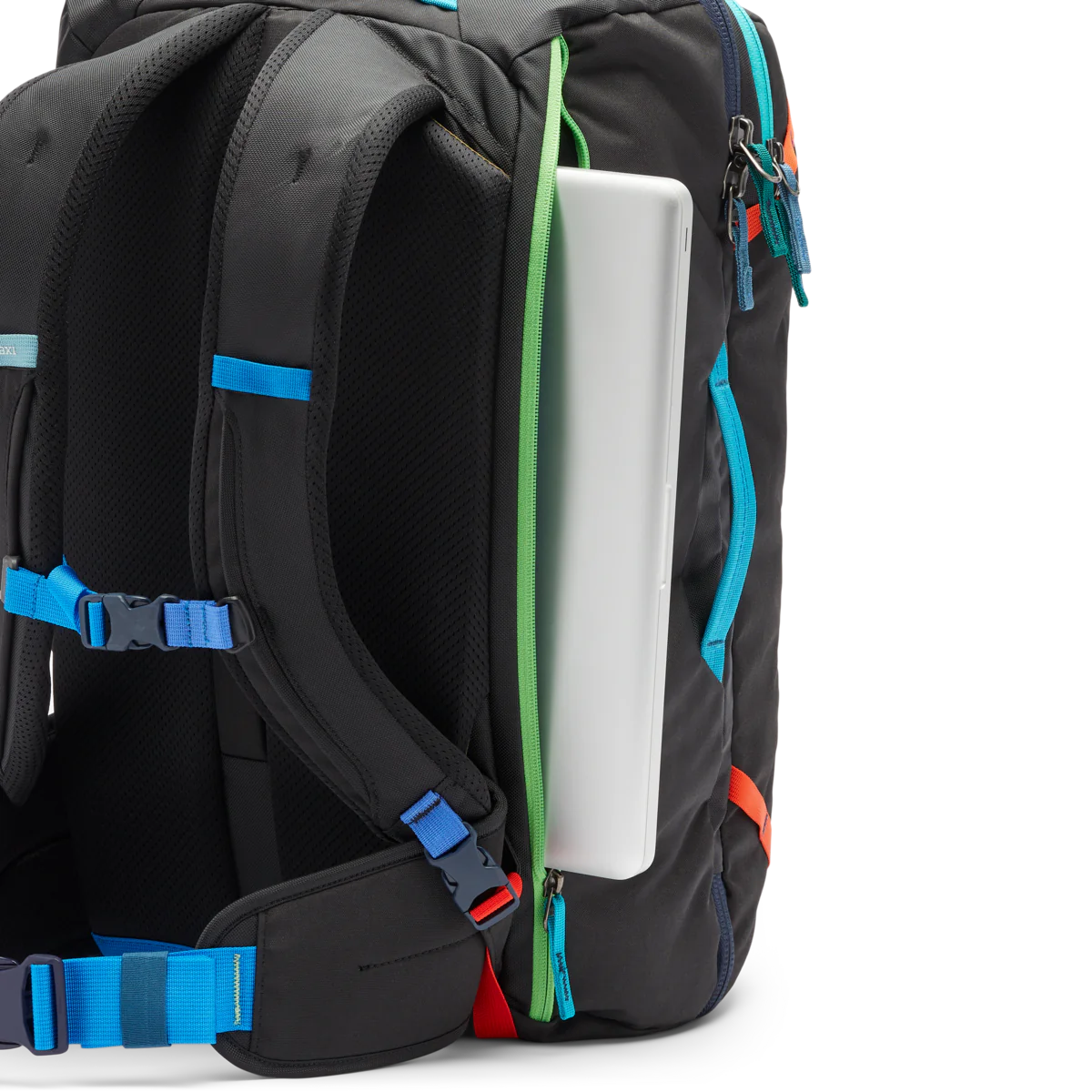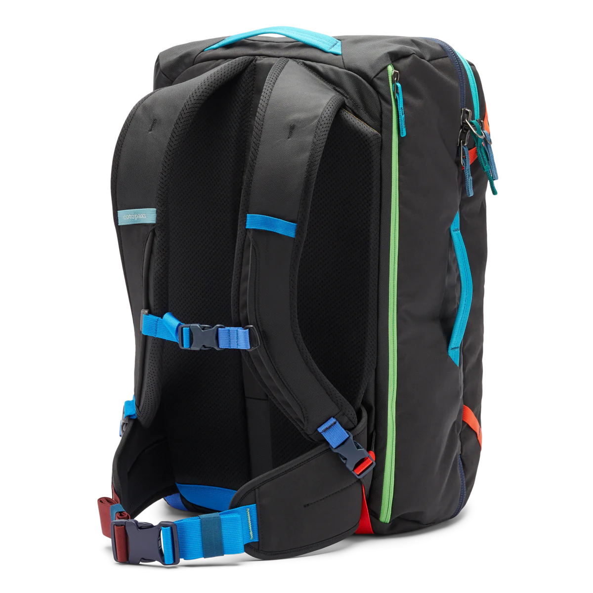 New features include better weight distribution and air mesh shoulder straps for an ultra-comfortable carry, an exterior stretch water bottle pocket, and a luggage pass-through strap that easily slides over the handle of a roller bag (like our Allpa Roller Bags).