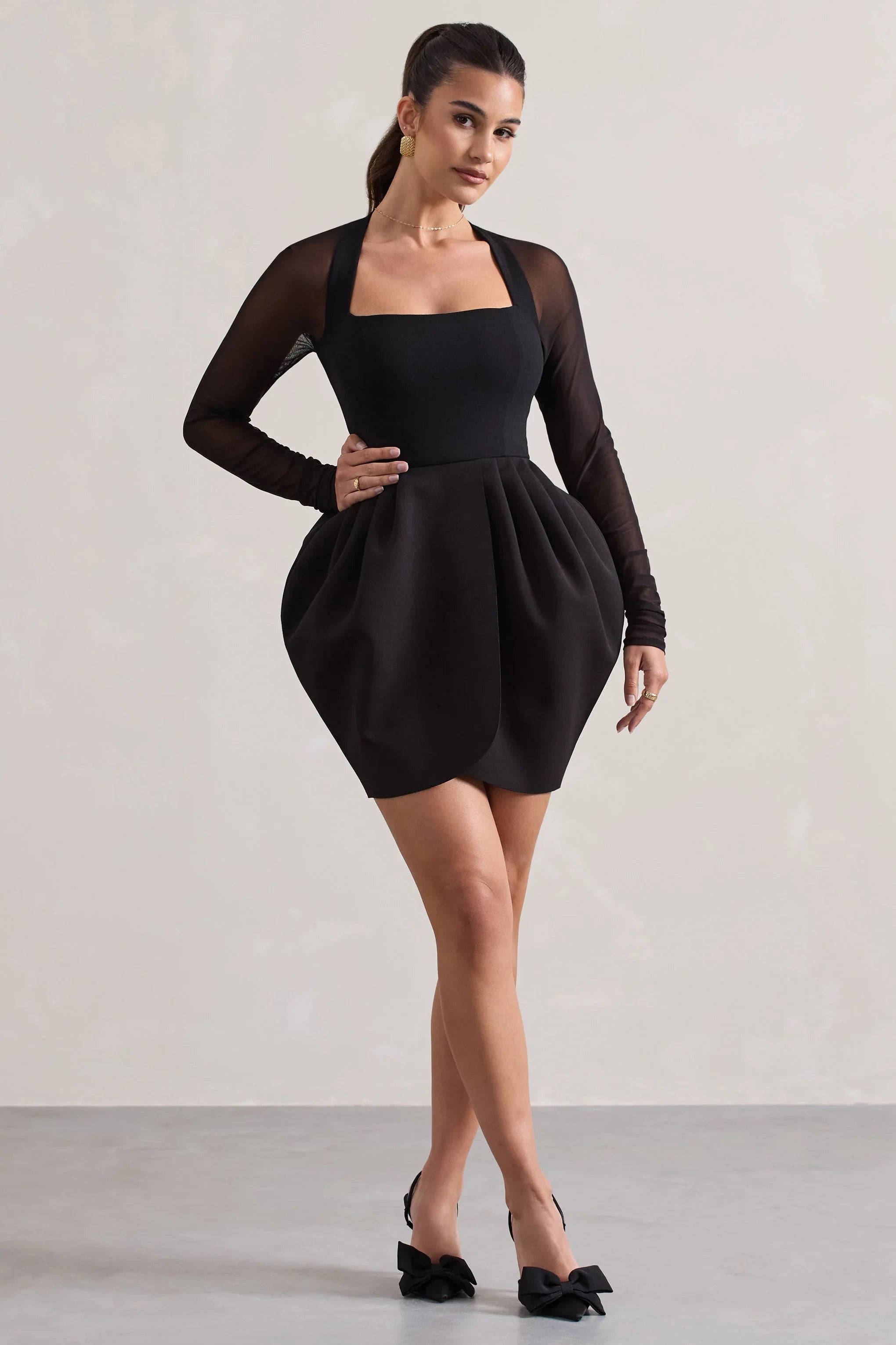 Dare to dream in Alto, our playful LBD. Designed in our premium scuba crepe, this mini dress features long mesh sleeves that flow into a supportive square neckline. The star of all features is Alto's tulip skirt thats highlighted with subtle mesh inserts to enforce its stunning structured shape.