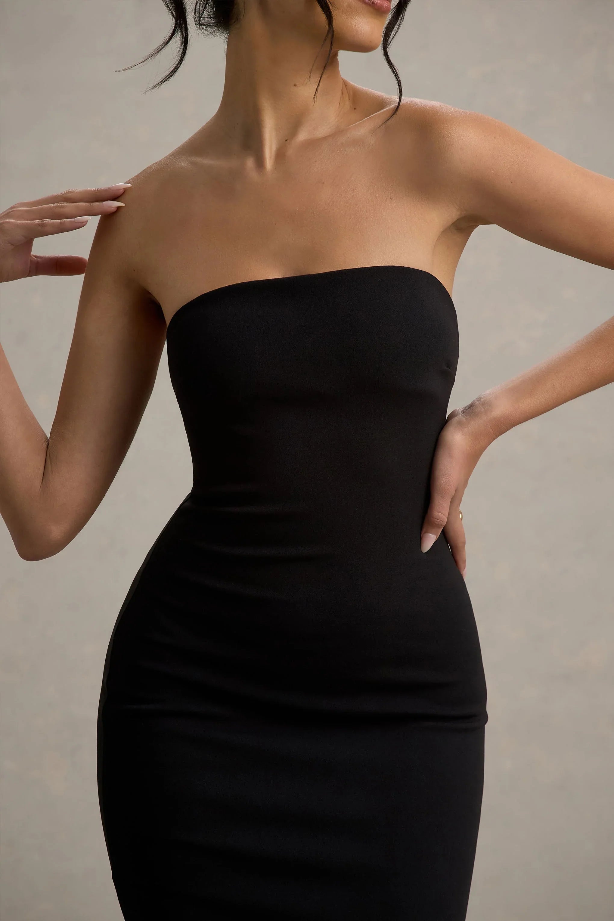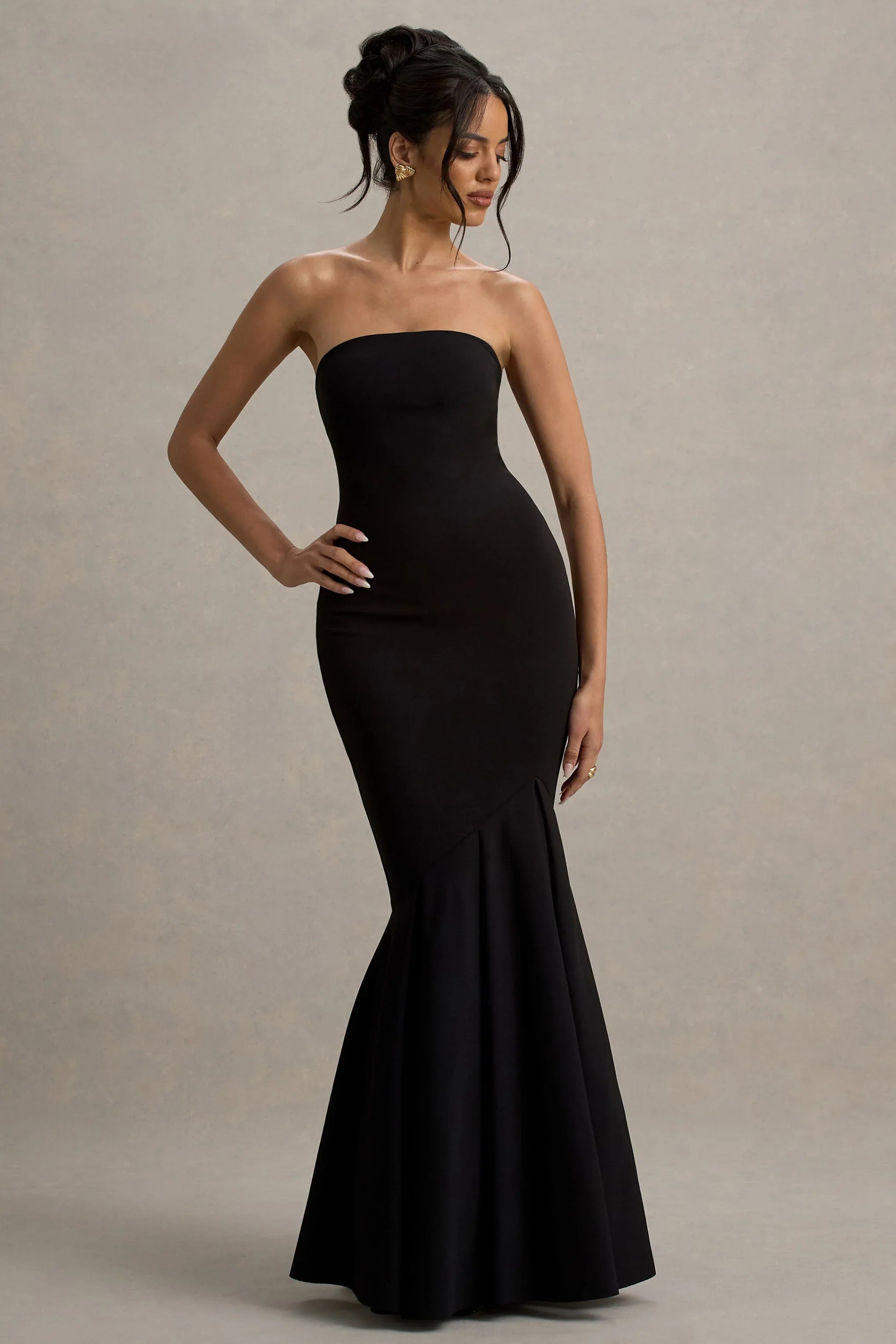 What's not to love about our classic Angela maxi dress? Cut in our premium black scuba crepe, this piece features a striking and flattering fishtail silhouette as well as a stunning bandeau neckline. Angela is the perfect blend of comfort and elegance, making it a staple for your occasion wardrobe.