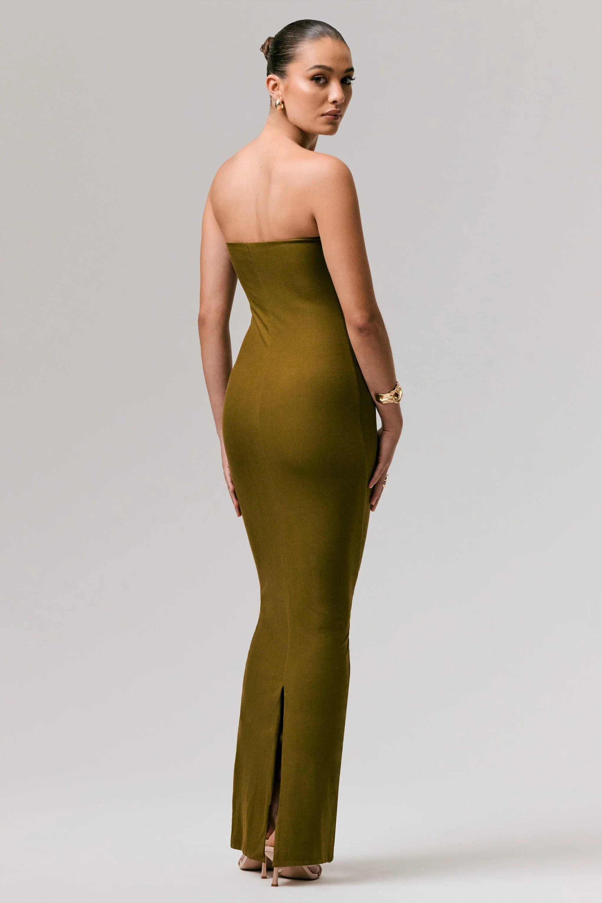 Striking in its simplicity, Angelie was designed to stand the test of time. Arriving in a curve-enhancing silhouette of our dual-layered jersey, this green maxi dress is proof that the most simplistic styles can have the most impact.