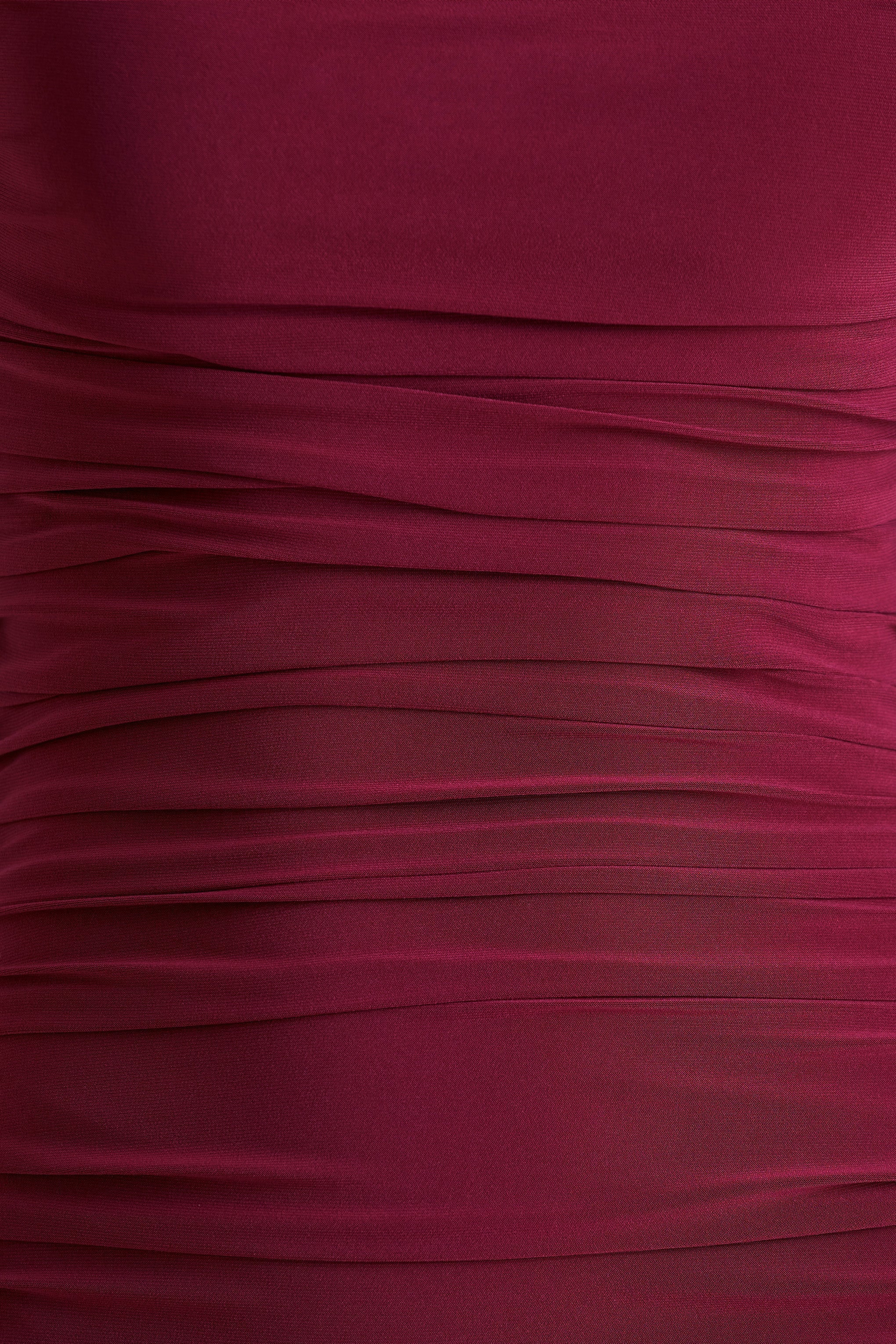 For a look of understated elegance Aniyah is the perfect choice. Curated in a rich burgundy hue of our signature stretch jersey, this dress flatters your figure from every angle. The high neck adds an elegant feel to this gown, while the drop waist and ruched detailing give an effortlessly chic finish. Walk into any occasion in Aniyah and watch all eyes turn on you as the skirt graciously moves with you. Style with a statement earring for a touch of drama.