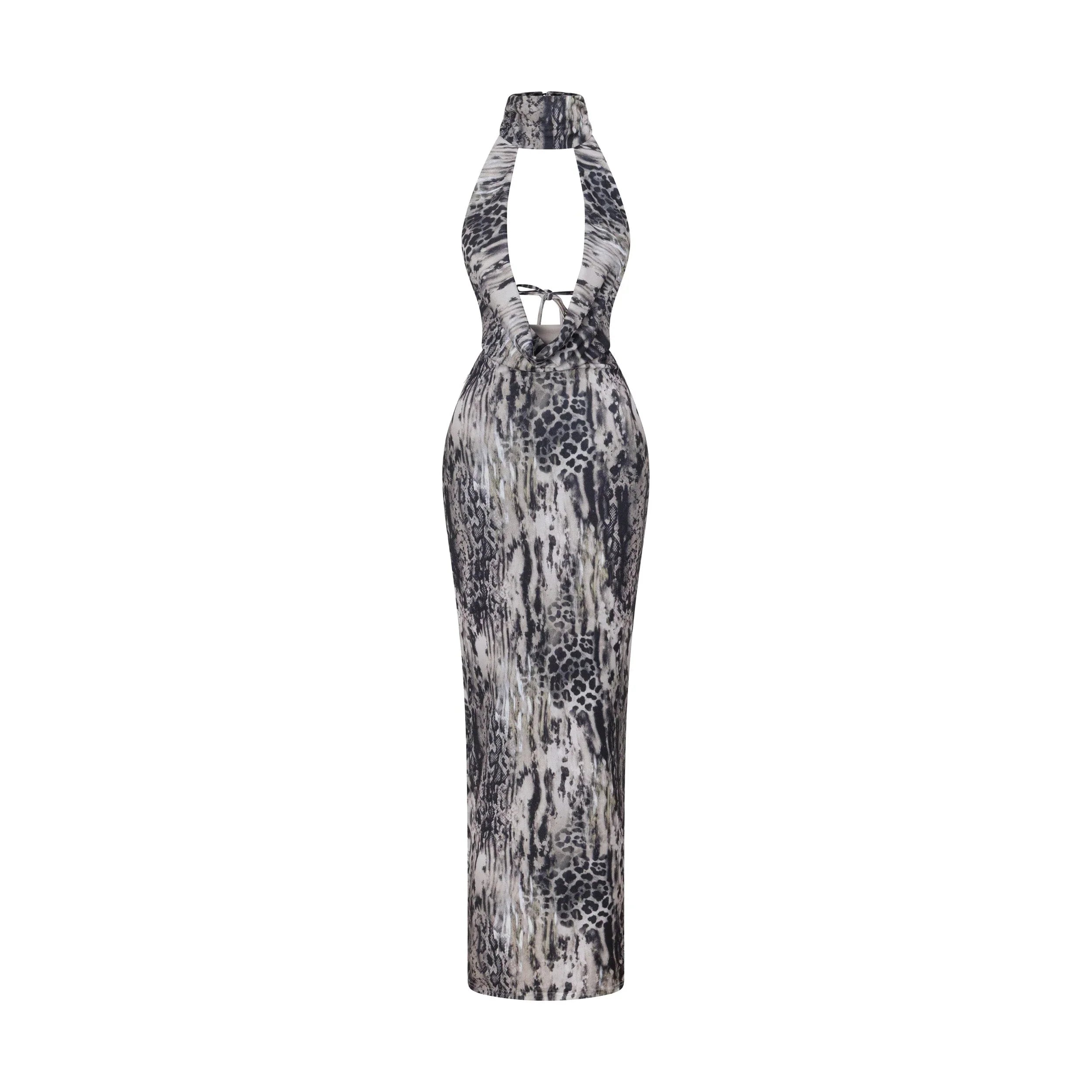 This stand out maxi dress is crafted from soft, stretchy jersey fabrication and is fully lined for a smooth silhouette. Antonia features a high neckline with a delicate button closure, followed with a graceful cowl neckline for an elevated touch. The adjustable back ties ensure a flattering, customisable fit, making it perfect for your next special event.