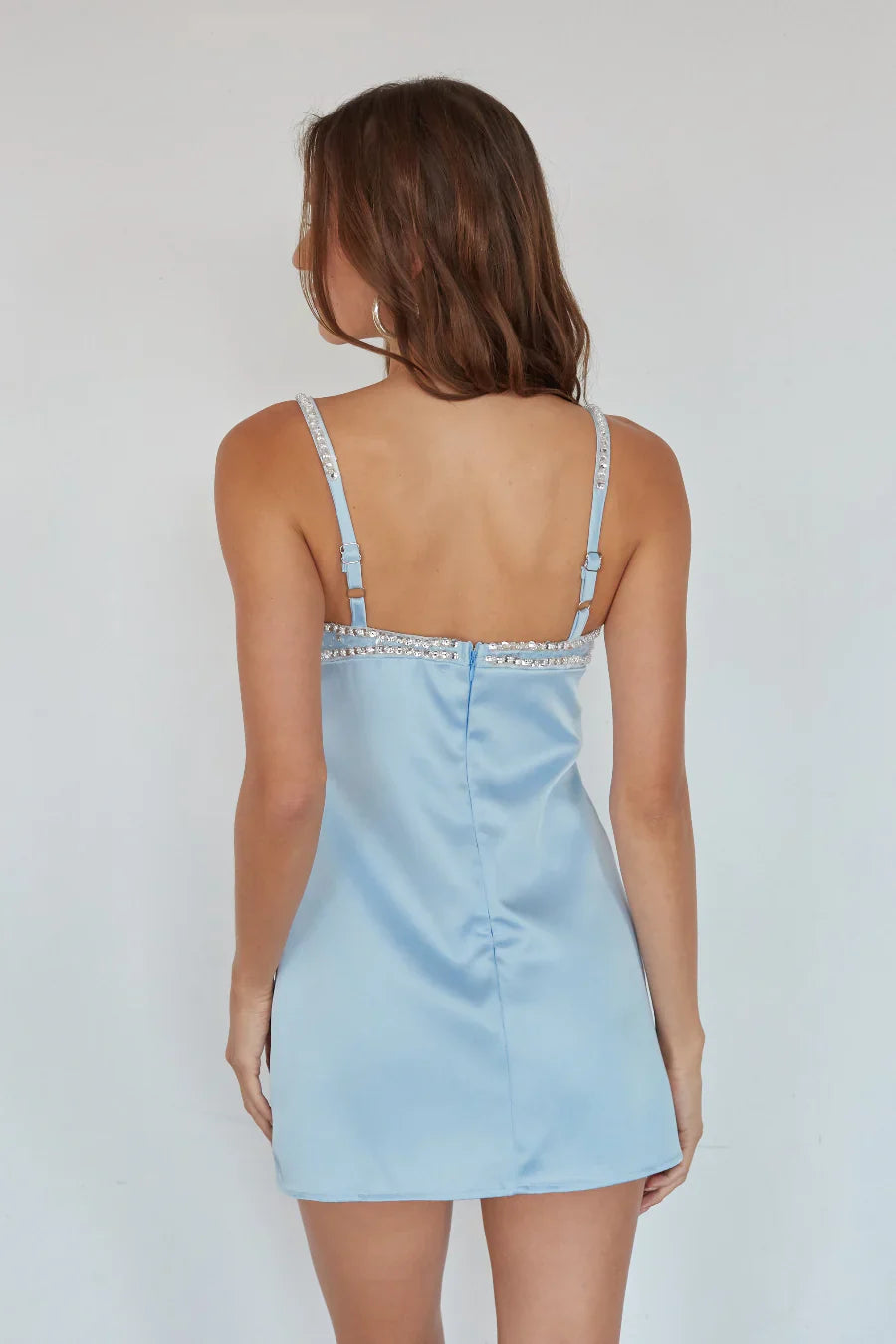 Get ready to stand out in the Blair embellished mini dress, available in both white, pink and light blue colorways. This stunning mini dress beaded design features delicate rhinestones, sequins and mesh details that elevate the classic silhouette with luxe sparkle and dimension. It’s perfect for graduation, special occasions, or even a night out!