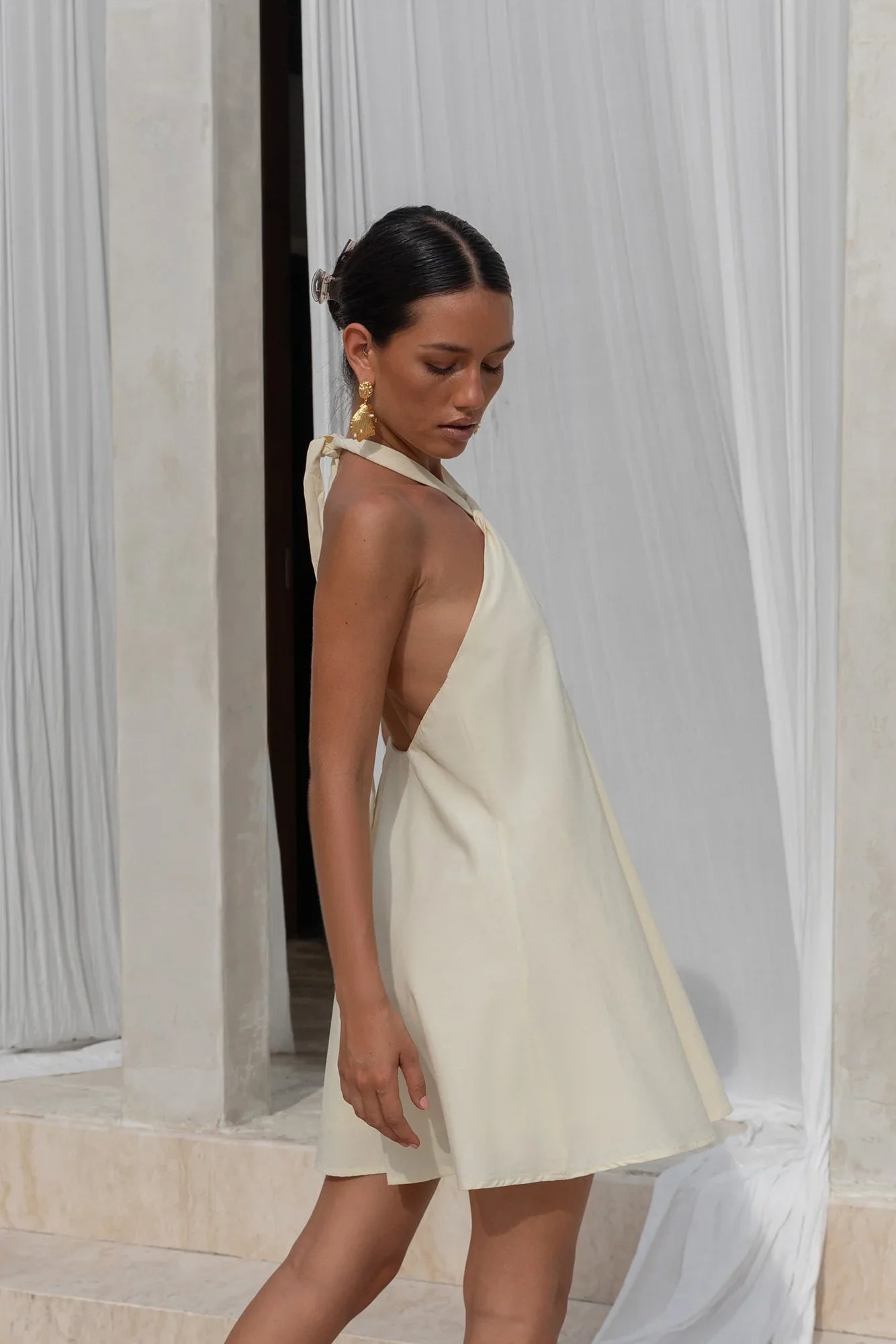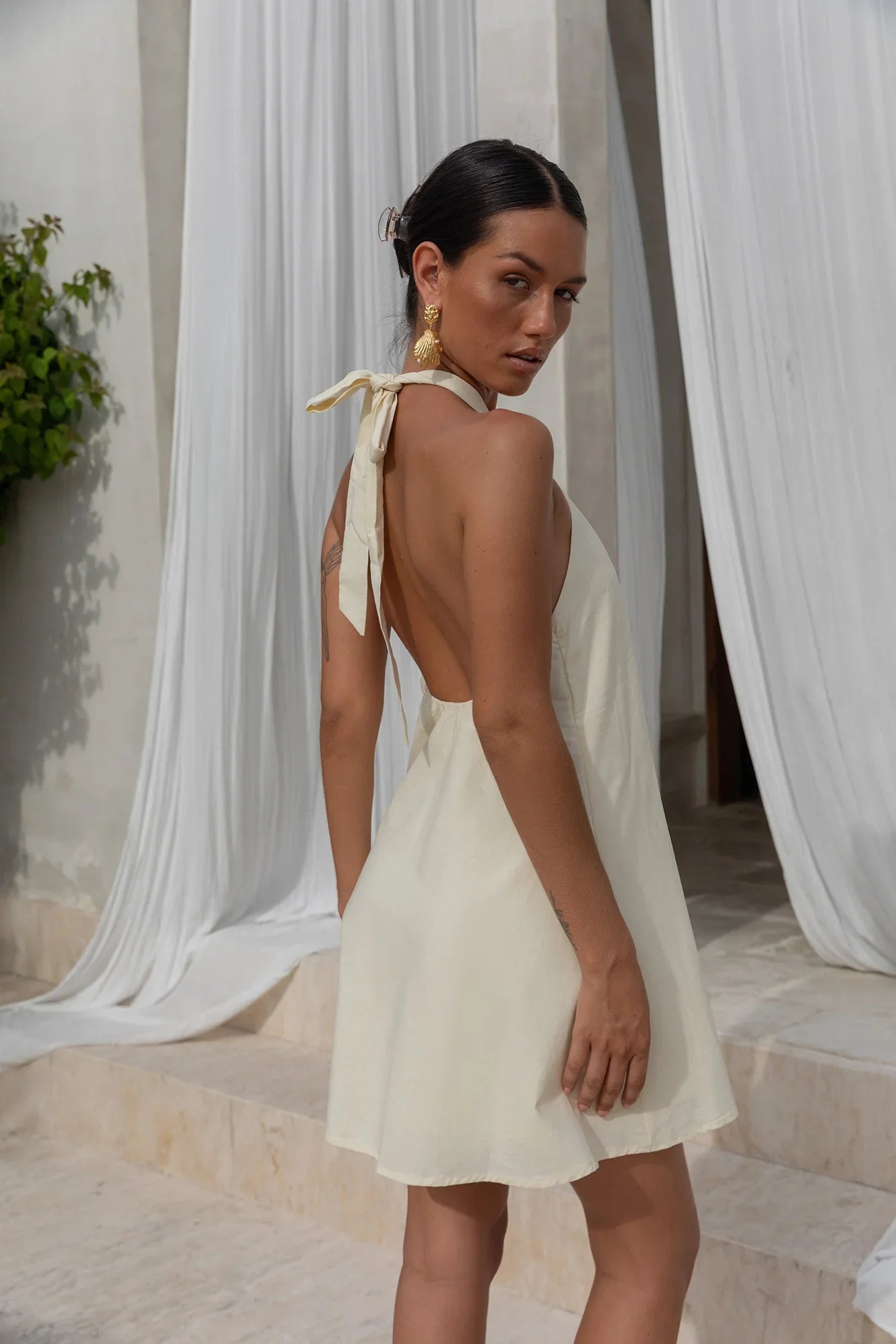 Sun, skin, and a splash of something sweet—the Coconut Sips Mini Dress is made for island days and balmy nights. With its halter neckline and flirty cutout detail, this flowy mini brings the heat while keeping it light. Easy to slip on and true to size, it’s your ultimate throw-on-and-go for sipping cocktails, dancing barefoot, and living the vacay dream.