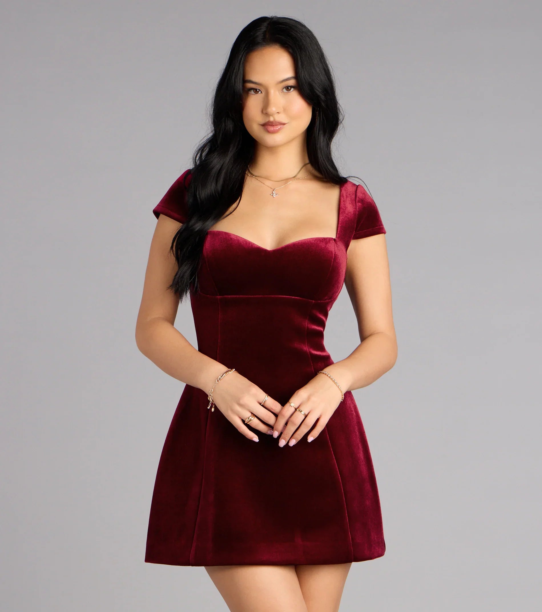 The Dana mini dress captivates with its plush velvet finish and timeless A-line silhouette. The sweetheart neckline and lace-up back strike the perfect balance between elegance and allure—ideal for any RSVP that calls for turning heads.