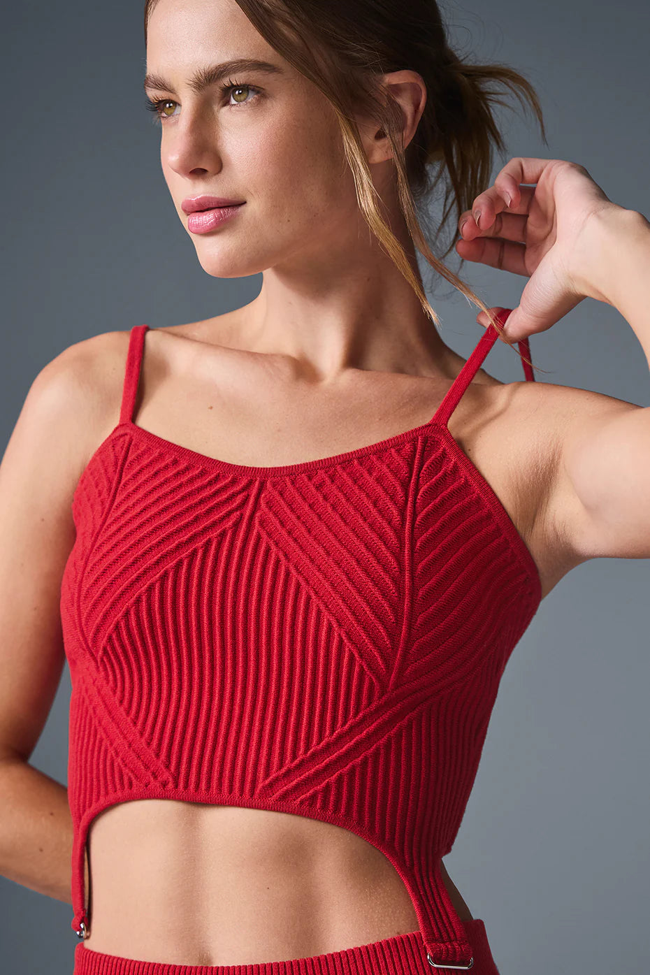 Crafted from soft, structured, ribbed-knit fabric inspired by the nuanced texture of denim, this tank features a cropped fit, dainty adjustable shoulder straps, and a garter strap detail for a touch of allure. Trust us, you��re going to want one in every shade.