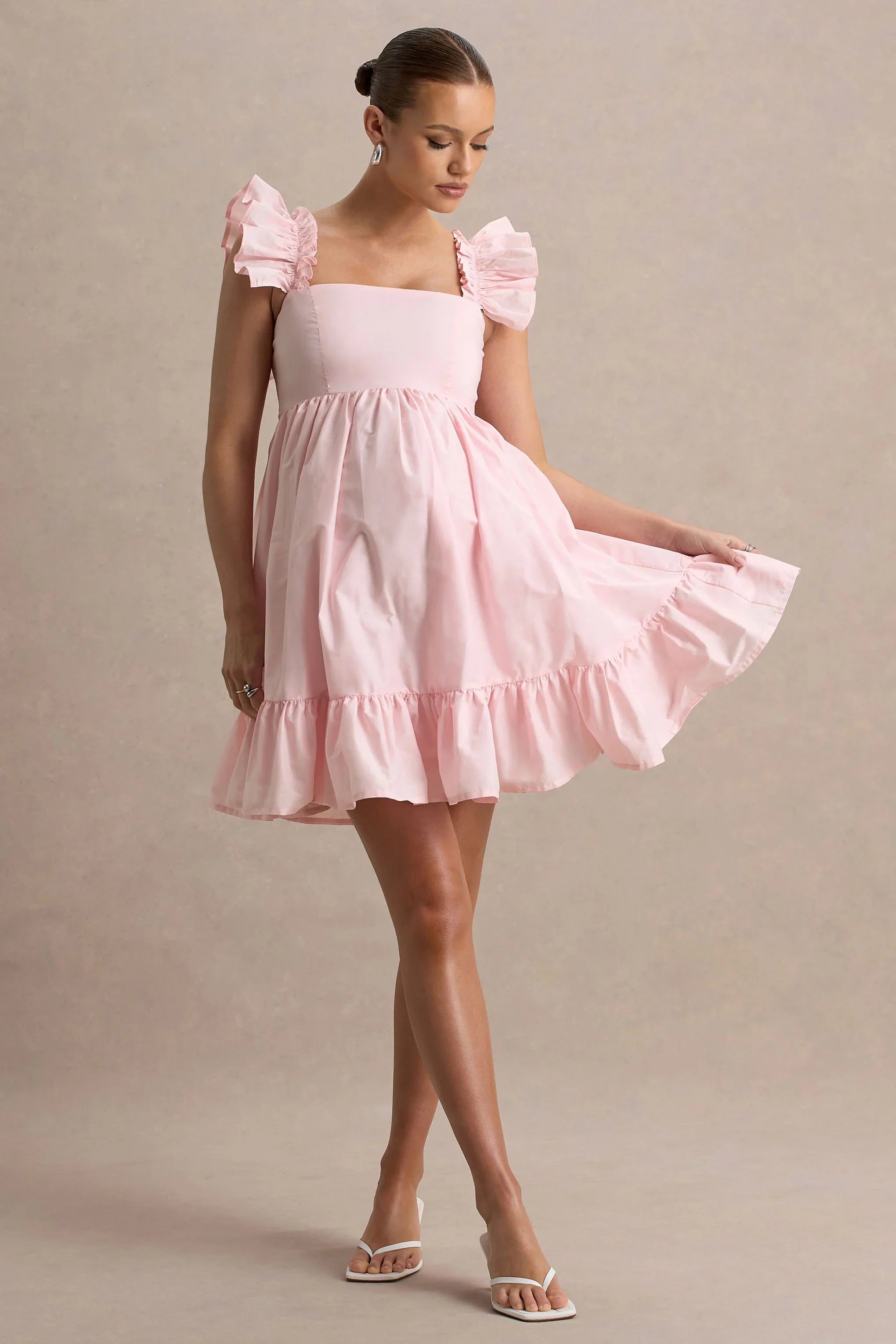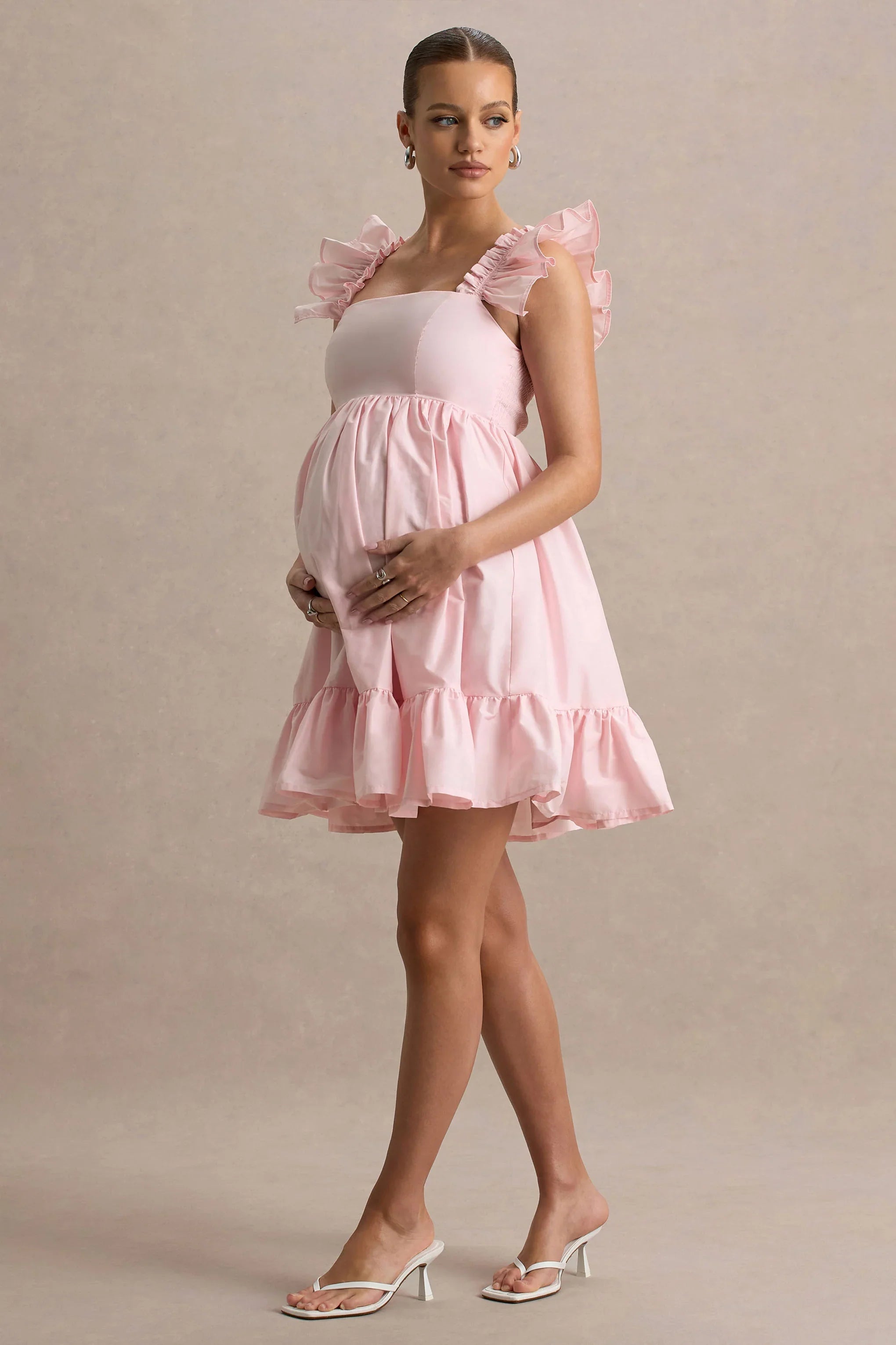 Flirty and fun, our Dolly Daze is the perfect blush pink dress for the warmer seasons. This babydoll mini dress features ruffle sleeves, a square neckline to complement your decolletage, and a tiered hem to show off your pins. A gorgeous, floaty mini dress, Dolly Daze is a warm-weather maternity staple.