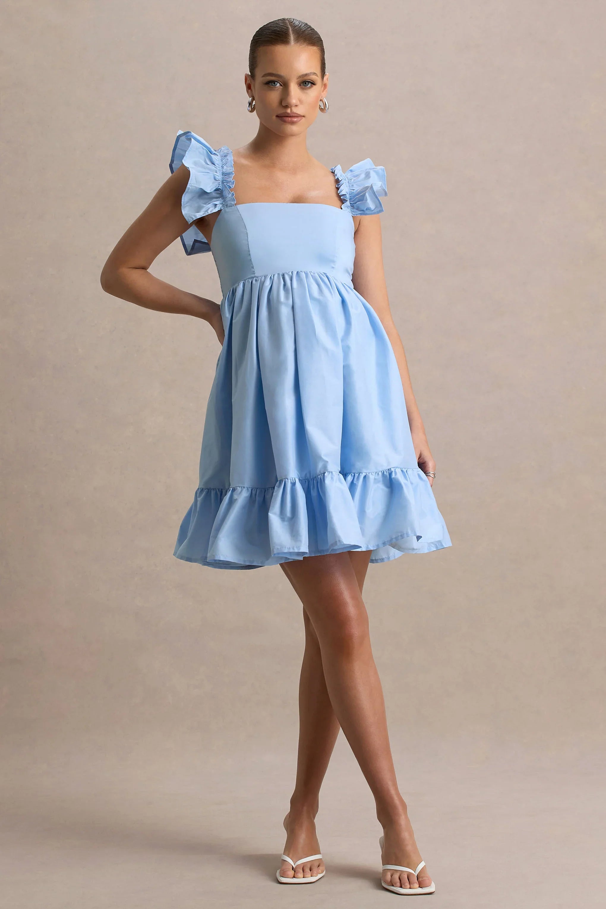 Flirty and fun, our Dolly Daze is the perfect powder blue dress for the warmer seasons. This babydoll mini dress features ruffle sleeves, a square neckline to complement your decolletage, and a tiered hem to show off your pins. A gorgeous, floaty mini dress, Dolly Daze is a warm-weather maternity staple.