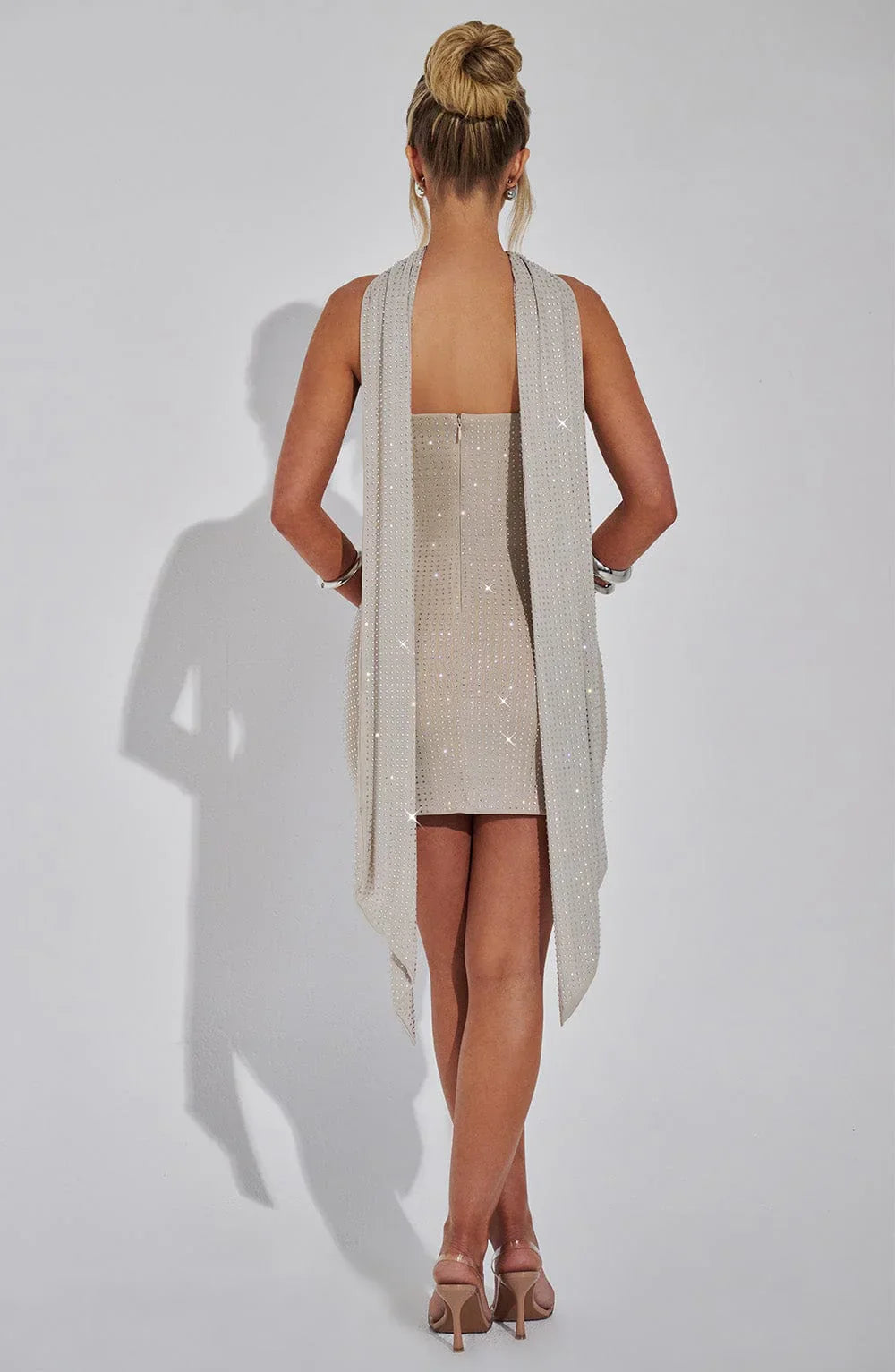 Add a touch of sparkle and elegance to any outfit with the accessory of the season. Crafted from our delicate, semi-sheer stretch mesh with all-over hotfix rhinestone embellishment, the Ginni scarf drapes beautifully around the neck, elevating all your looks.