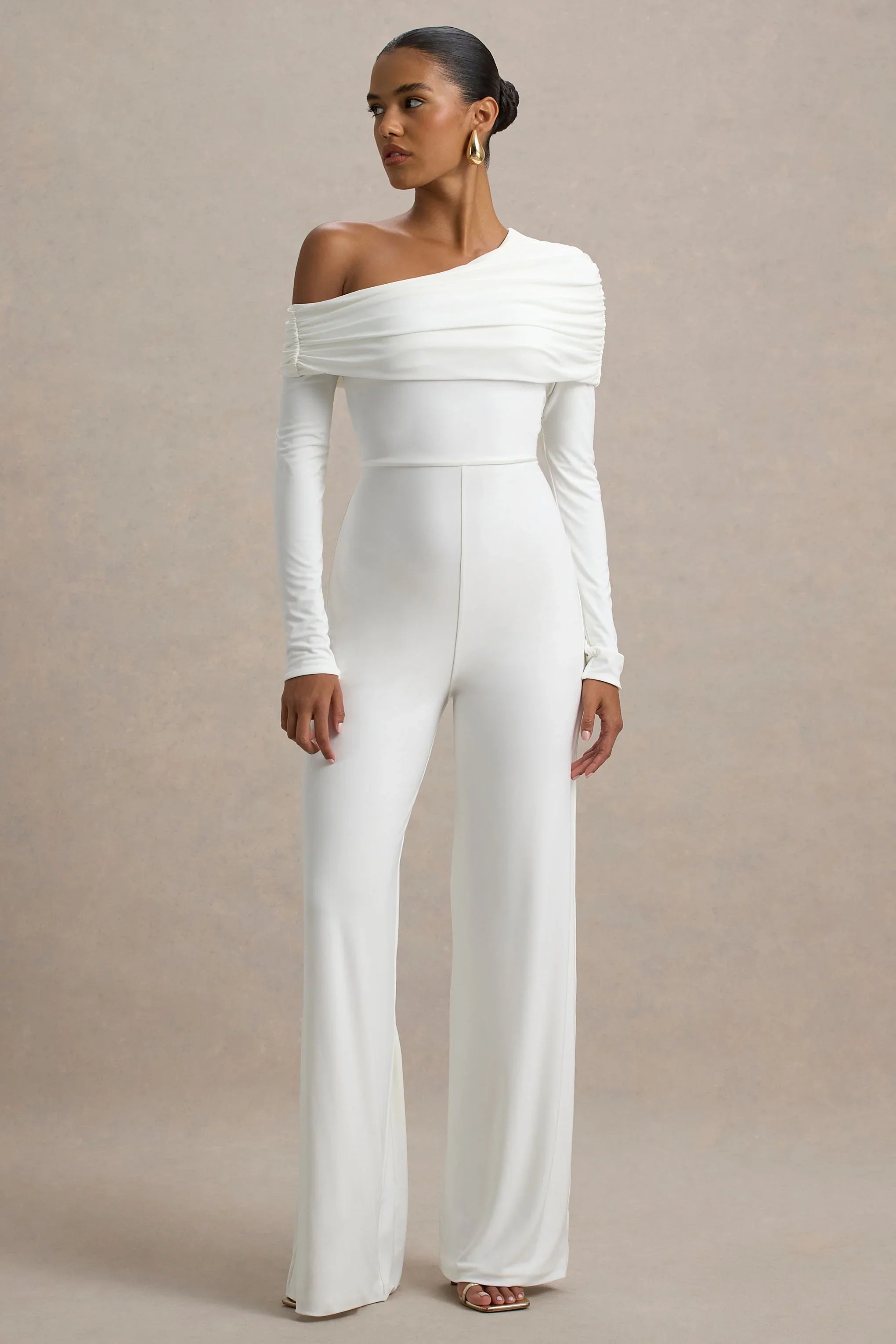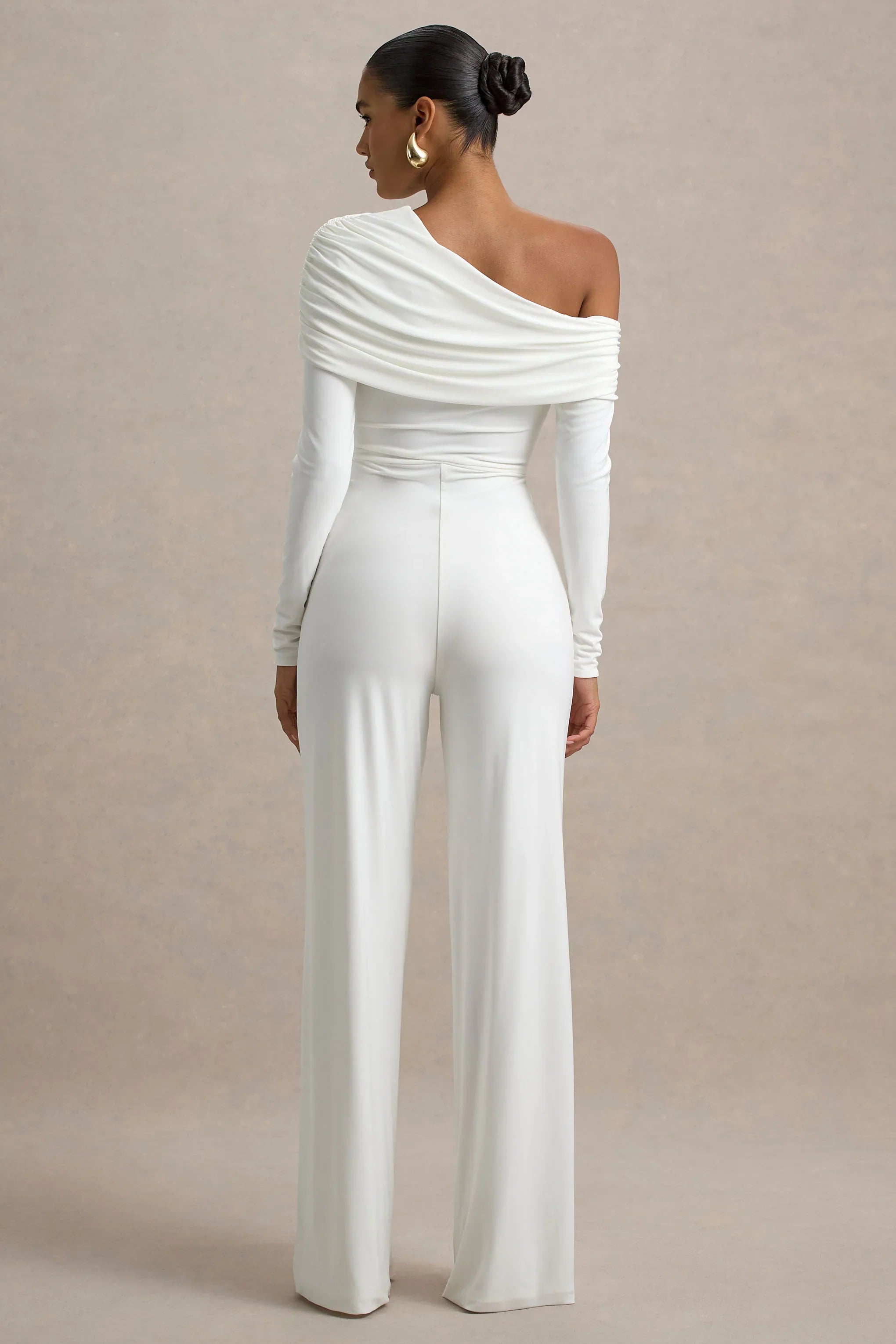 Simple yet chic, Gracious is a chic go-to for any event, from graduations to formal dinners. Crafted in our premium white jersey, this jumpsuit features a stunning asymmetric neckline made to turn heads. Pair yours with sleek stilettos for a look of utter elegance and sophistication.