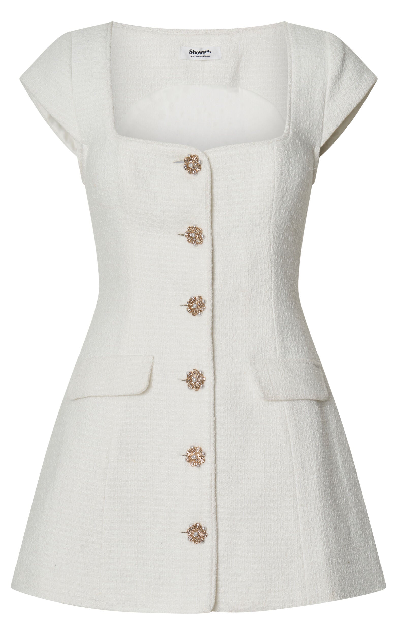 Elevate your wardrobe with the Patsy Mini Dress - a figure-flattering marvel that redefines chic simplicity. Perfectly tailored for the modern woman, this white fitted dress is a testament to timeless style and sophistication. Crafted from luxurious boucle polyester, it promises not just comfort but also durability, making it a staple piece you'll reach for time and time again.