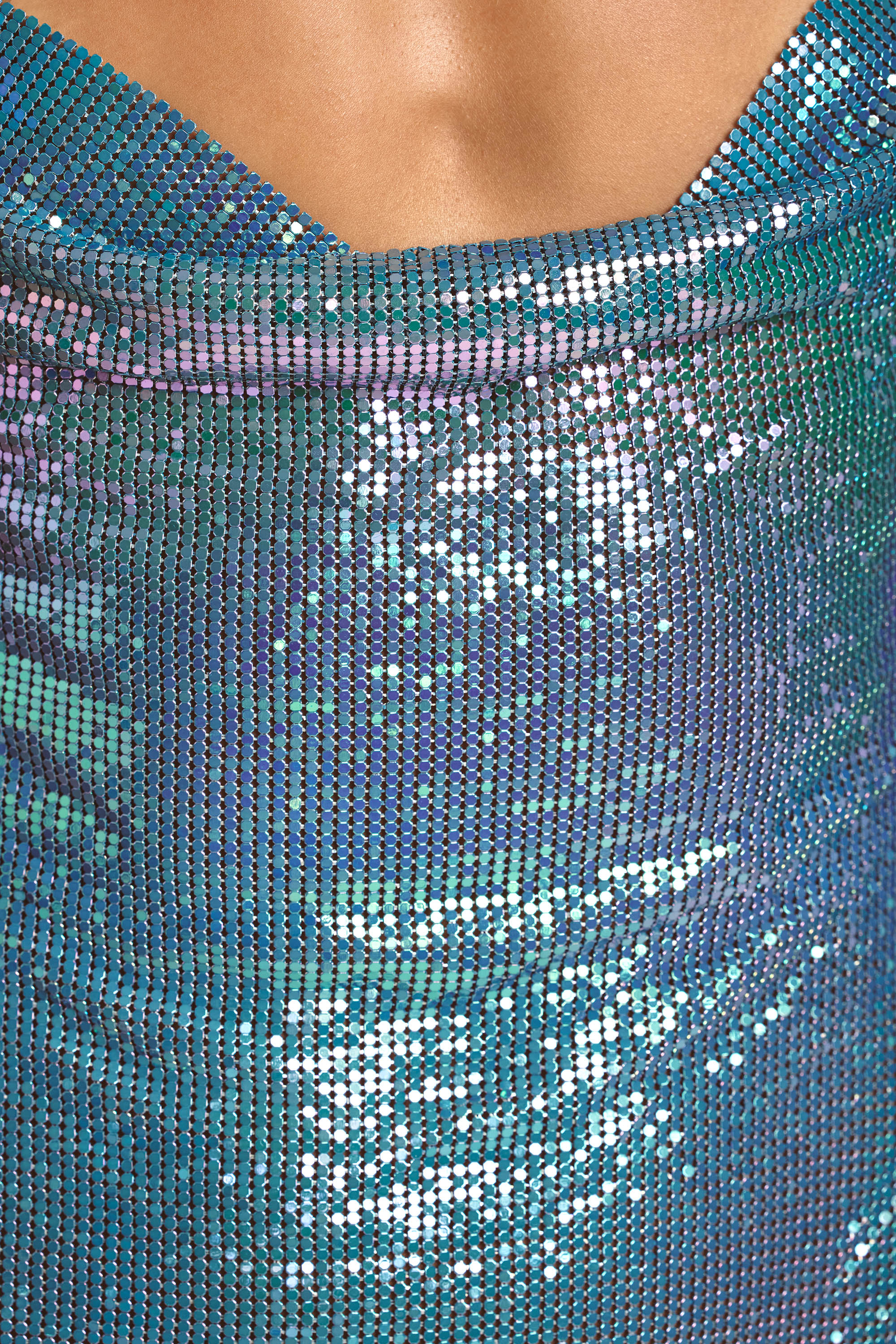 Designed in our delicate new chainmail and with a relaxed fit silhouette, the Vesper mini dress is a party-ready piece, designed for premium occasions. Featuring a bust-flattering cowl neckline and sultry low back, this seductive mini style is complete with godet detailing to both sides.