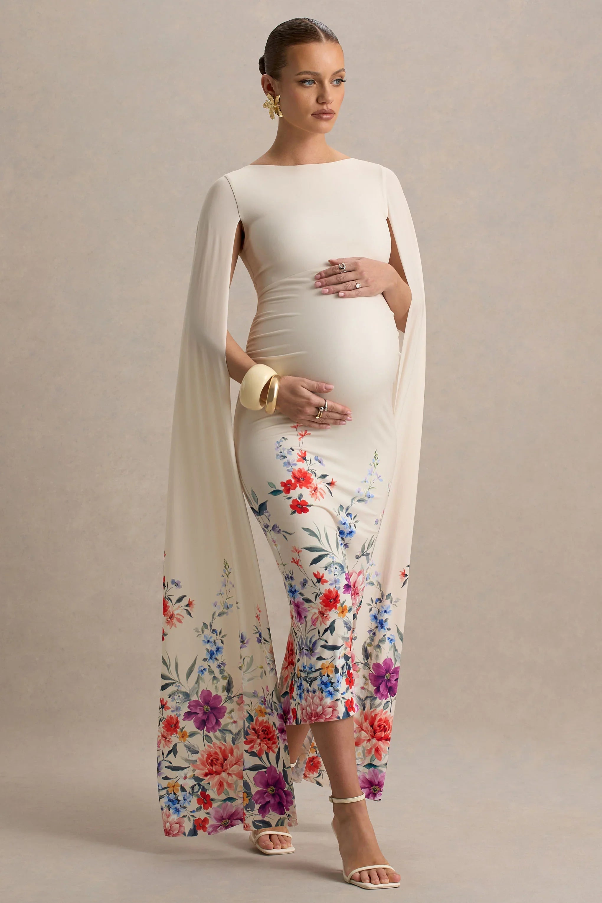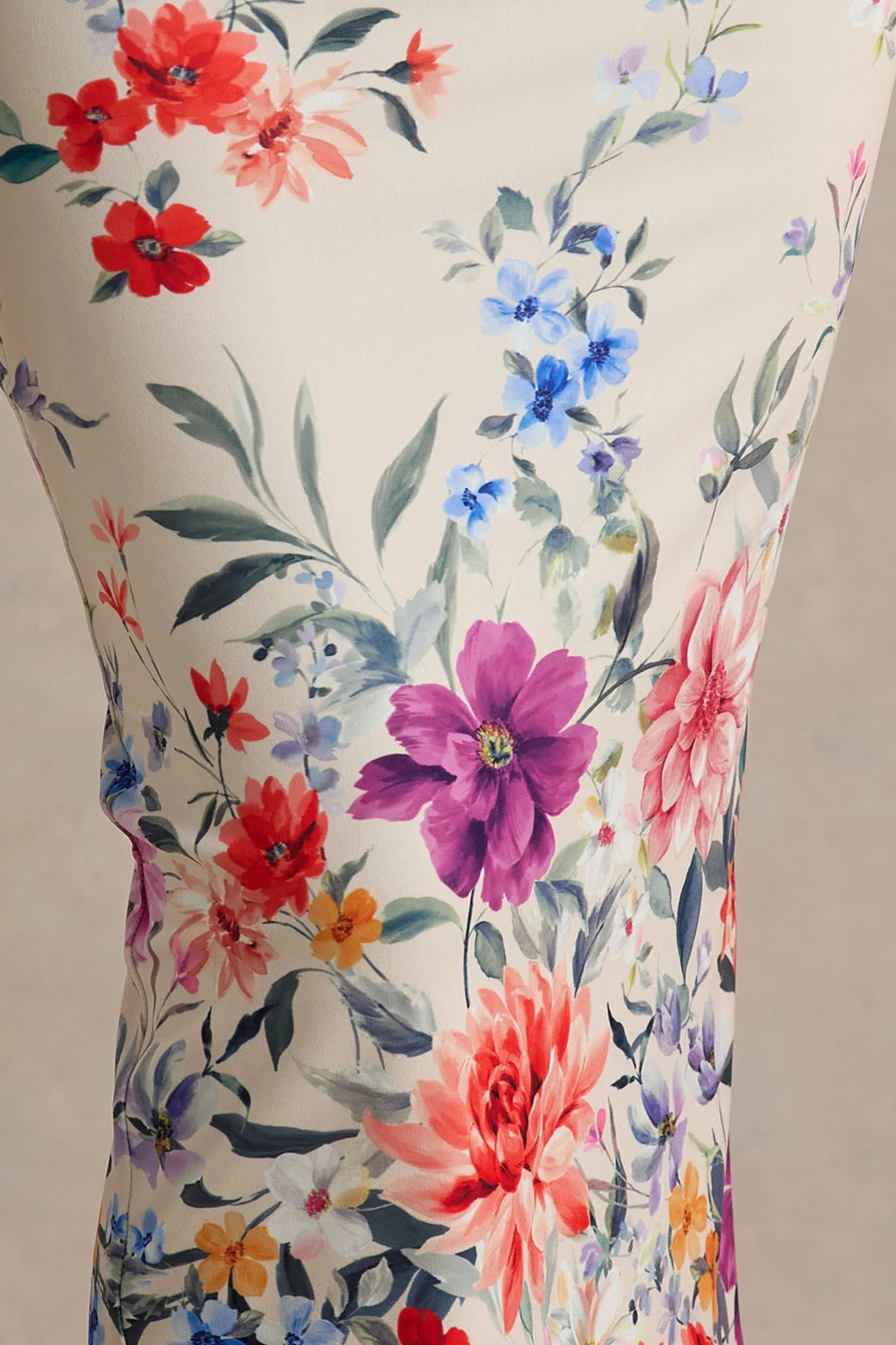 Feel your best for any dressed up moments this season in our latest midi Providence. Cut in our premium stretch jersey, to maximize comfort whilst flattering your figure, in a striking light pink floral print. Finished with an elegant boat neck and statement cape sleeves, this piece will capture the rooms attention. The ruched detailing adds a touch of delicacy, that contracts beautifully with the bold print. Providence is perfect for any special occasion, paired with gold accessories.