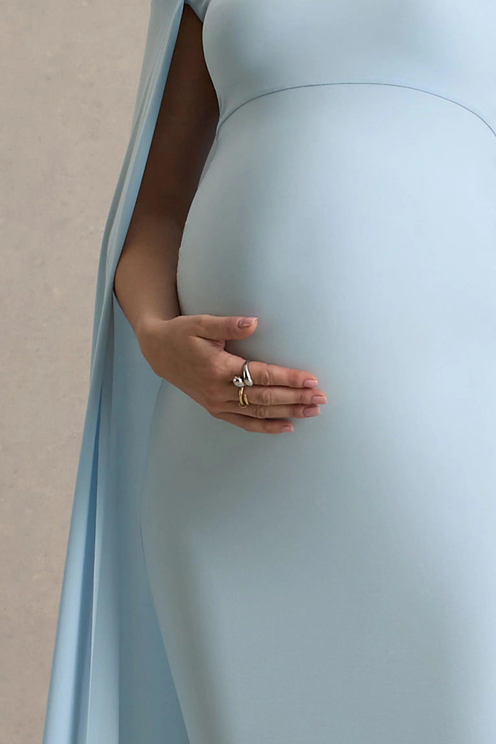 Make a dramatic entrance in our latest maxi, Radiance. Curated in a rich powder blue shade of our premium stretch jersey, this maxi seamlessly hugs your curves like no other. The fabric, paired with the ruched detailing ensures you are flattered from every angle. This gown is completed with a bardot neckline that highlights your decolletage beautifully, adding a touch of elegant femininity. The statement cape detail makes this piece a complete head turner, ensuring you captivate any room you walk in. Style with statement earrings to finish the look.