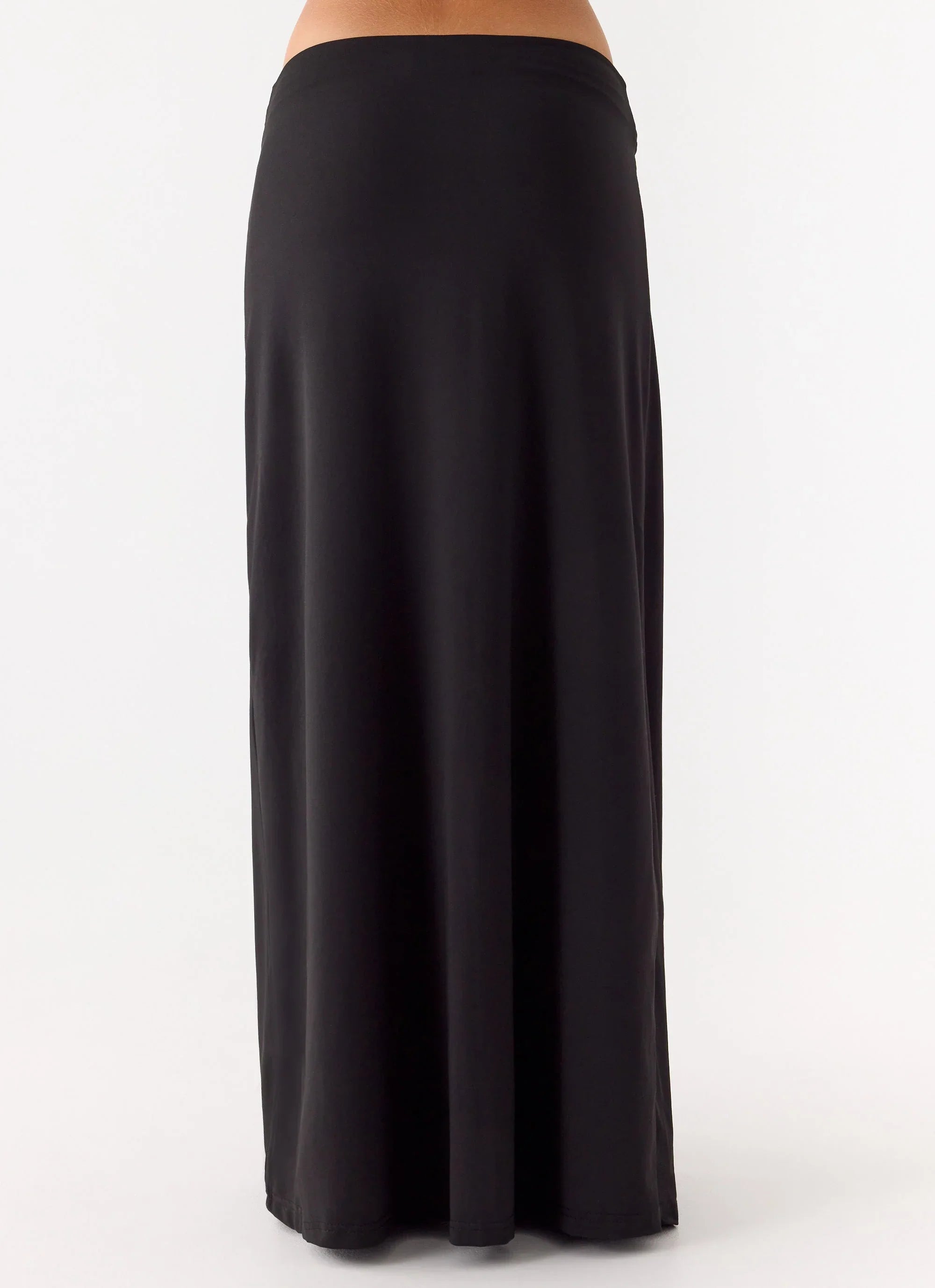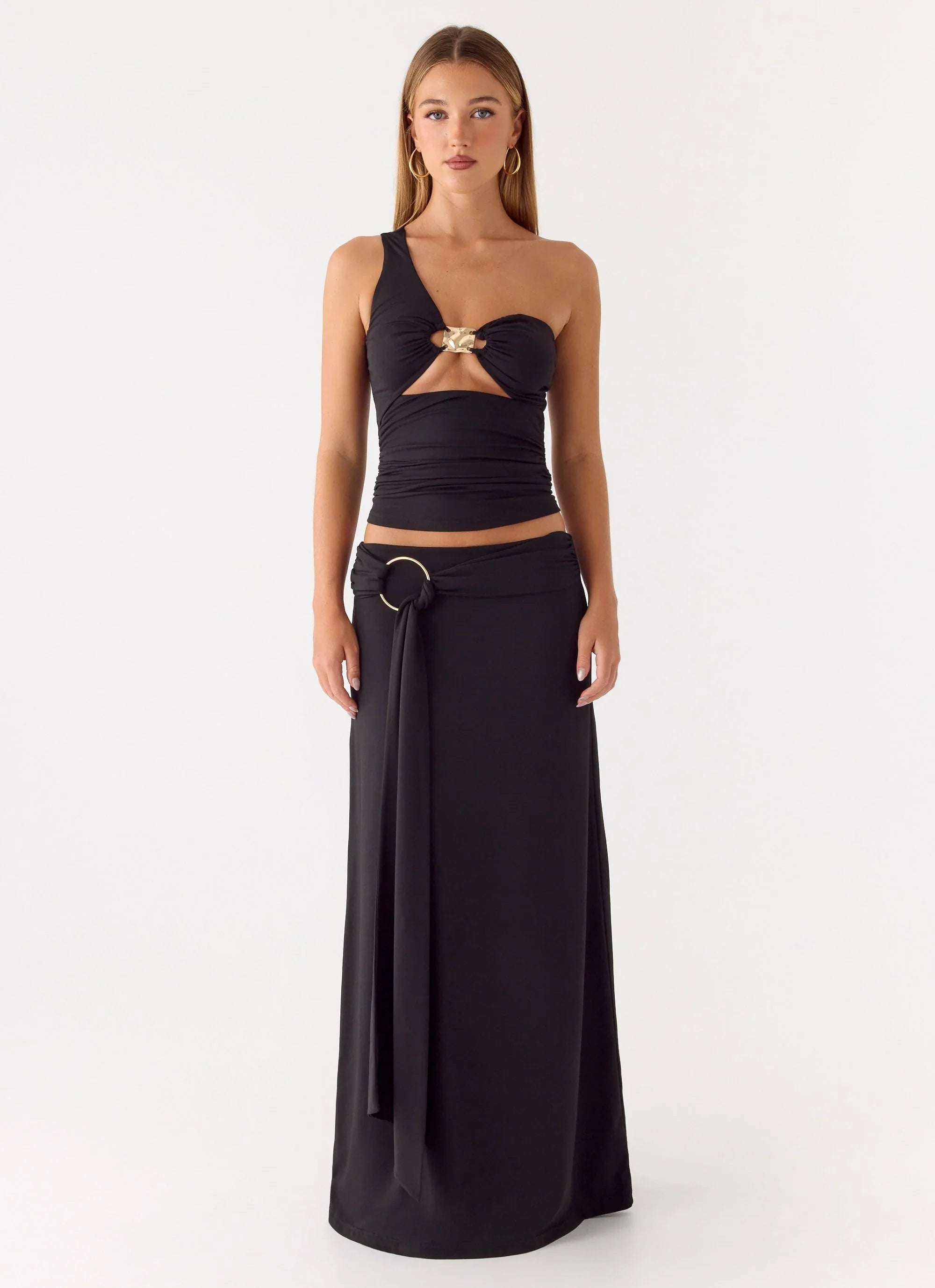 The Ravi Maxi Skirt is a versatile, elegant piece designed for effortless style. Crafted from stretch jersey, it features a flattering maxi length, a front sash with gold ring hardware, and a fully lined finish for comfort and shape.