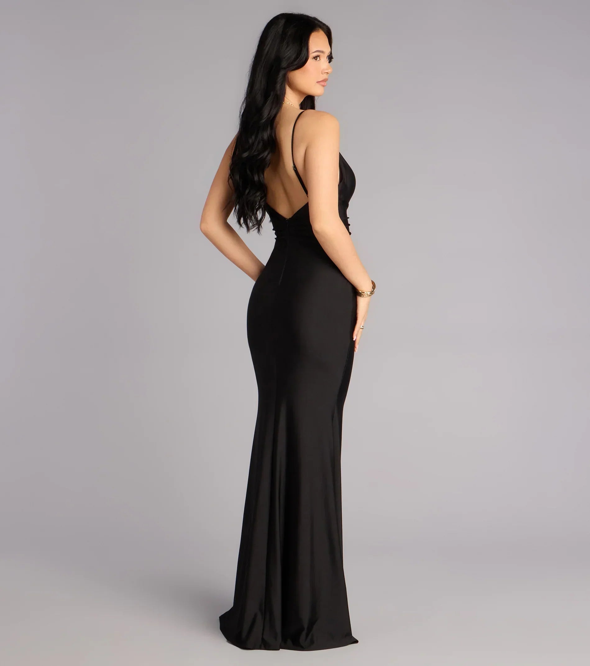 Designed for moments that call for elegance with a soft romantic edge, the Sage mermaid gown moves with effortless grace from ceremony to celebration. A sculpted V-neckline with a rosette front applique brings a refined focal point to a silhouette that feels polished and unforgettable.