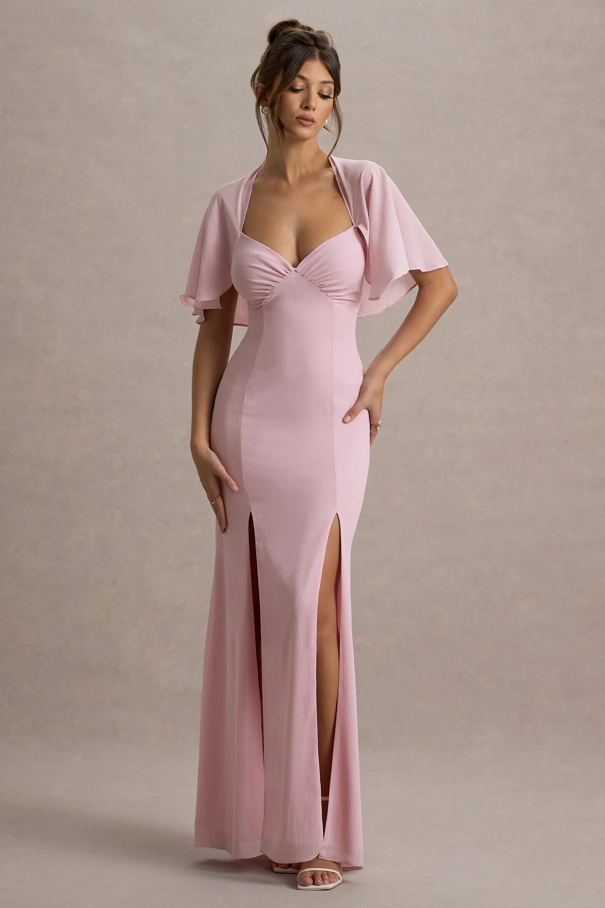 A refreshed silhouette for sunnier days, opt for soft sophistication in Stila. Arriving in a pale pink shade of our breezy woven fabric, this floor-length maxi dress is defined by a classic v neckline, fluttering cape sleeves and two centre splits. Style yours with some sparkling accents like Glimmery for the perfect summer wedding ensemble.
