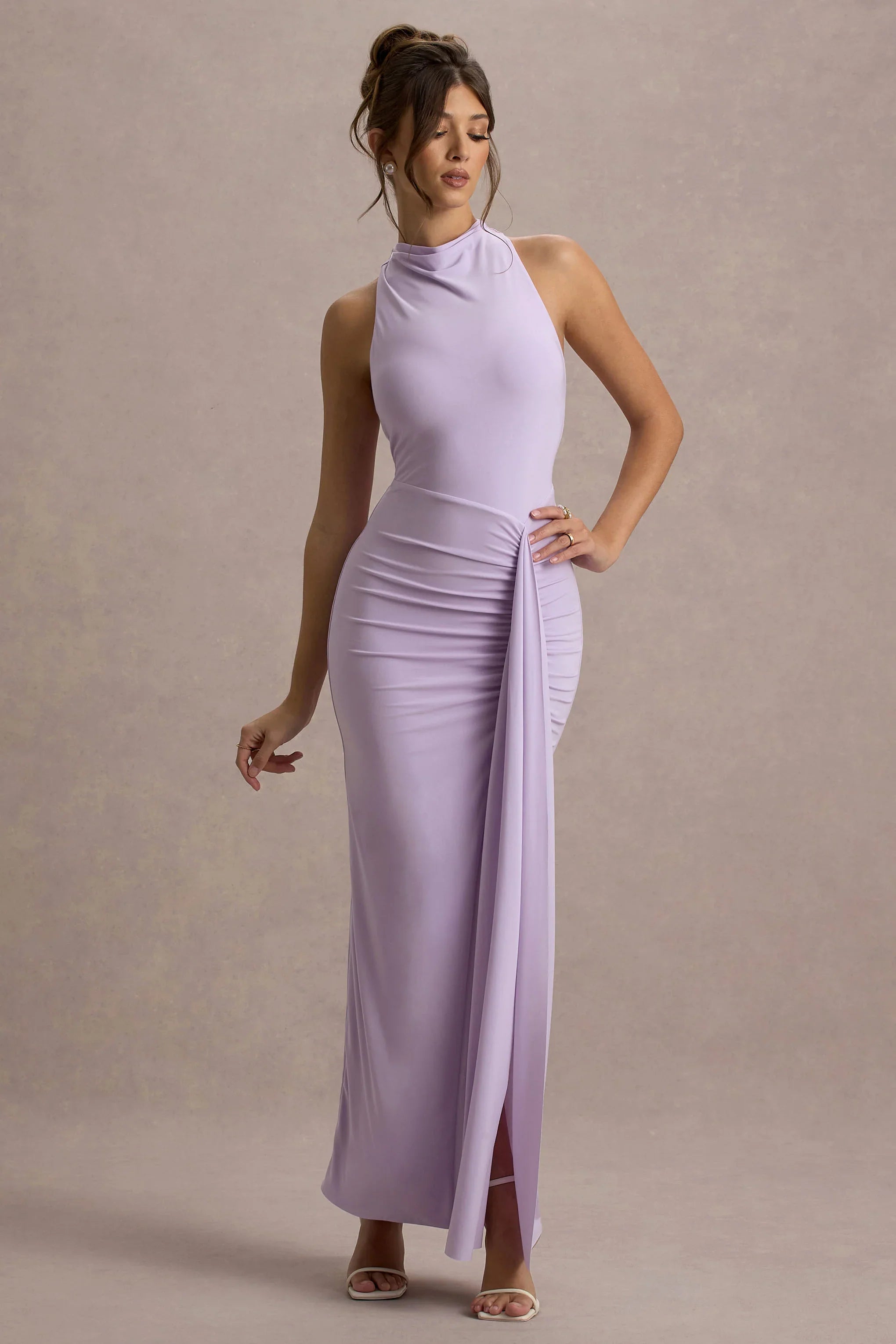 The epitome of class and elegance, Sunflower is defined by its flattering silhouette. Crafted in our premium jersey in a stunning lilac shade, this maxi seamlessly blends a high neckline, a ruched waist and a high leg split. Style yours with bold accents for a look of utter sophistication.