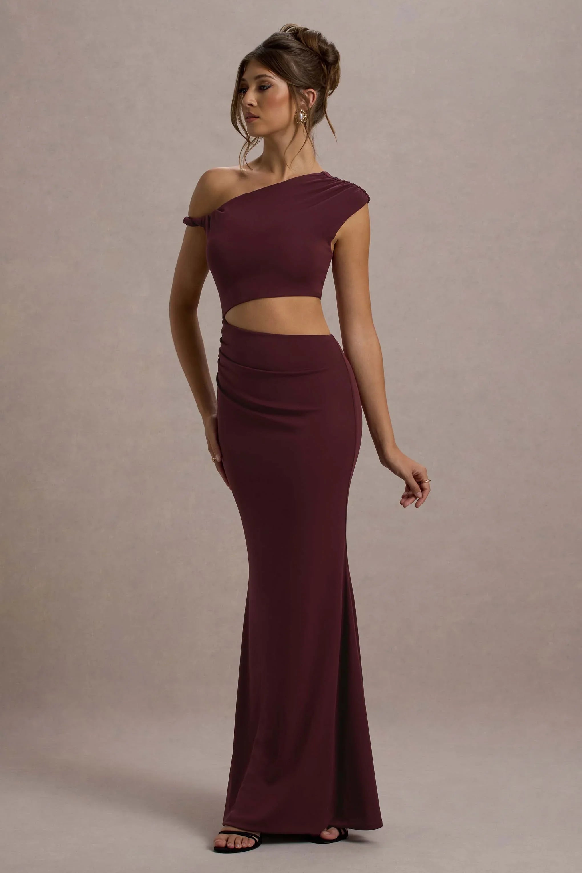 Irresistibly captivating, say hello to Thaliana, our sultry maxi dress. Expertly crafted in a deep port shade, this floor-sweeper boasts an intricate twisted strap, asymmetric neckline and cut-out waist. Whether its worn at your favourite beach club or romantic dinner date, Thaliana is a versatile addition to every wardrobe.