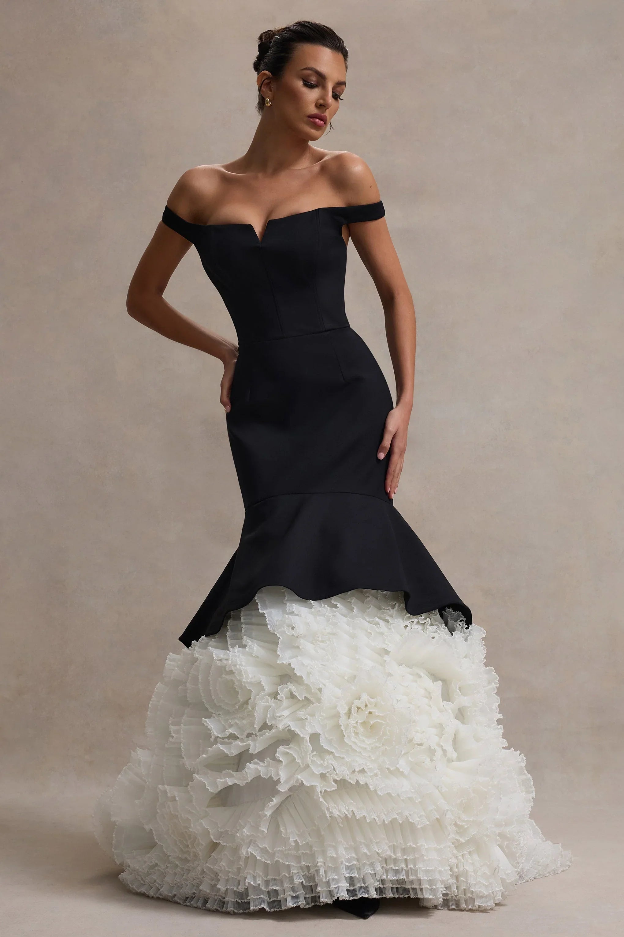 Unveil your inner elegance with our stunning maxi dress The Greatest, a masterpiece of timeless fashion and modern sophistication. This enchanting dress features a black premium cotton modal bodice which transitions into a luxurious cream premium tulle skirt. To create a captivating contrast which exudes grace and charm, try styling your The Greatest with a tousled bun.