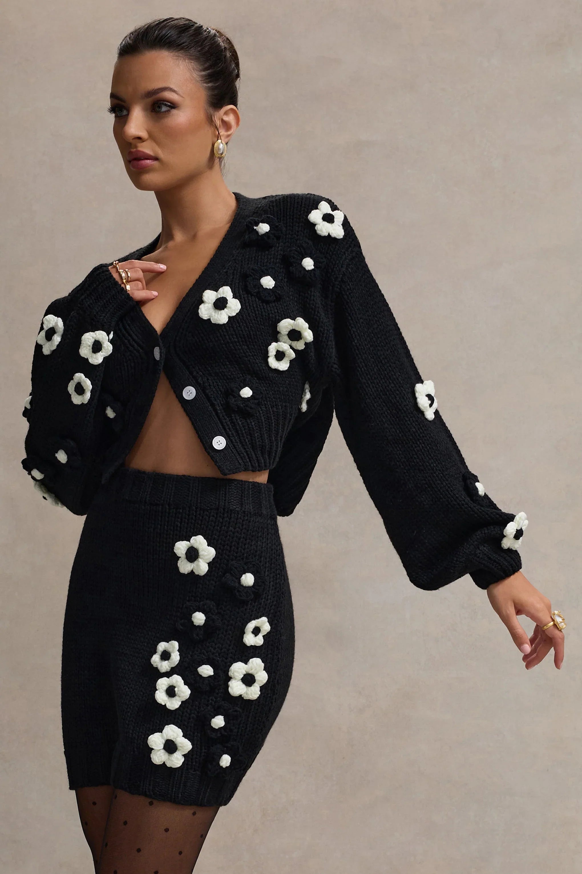 The cutest staple mini skirt Triomphe has just landed, ready to leave you strutting in style everyday this season. Arriving in a premium black and white mid knit and beautifully decorated with flower detailing, Triomphe is the epitome of chic. Style yours with the elegant matching cardigan Louvre.