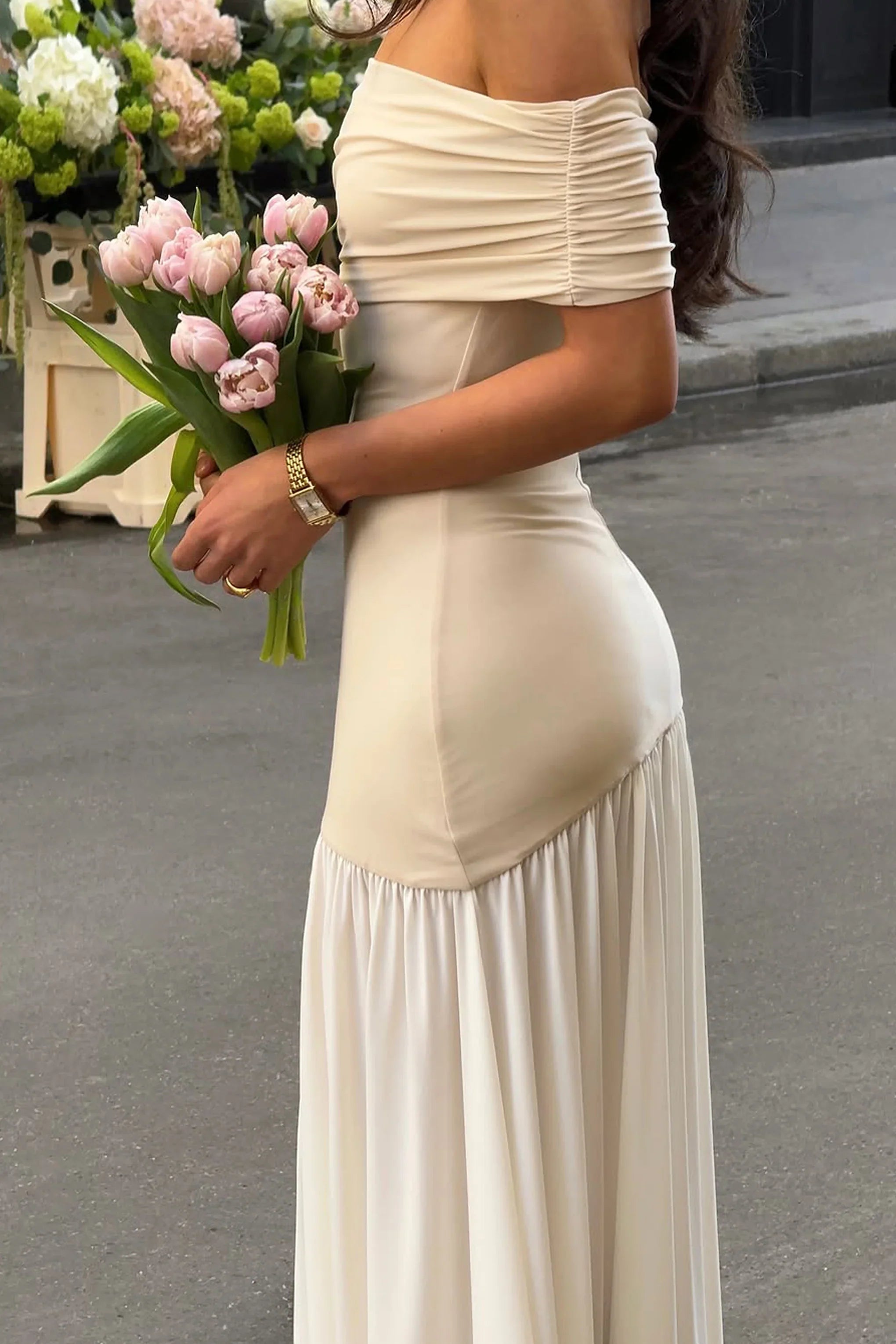 Obtain elegance and utter chicness in our Venezia Maxi. This piece uses a gorgeous contrast of stone and white, crafted in our premium jersey, to ensure a head turning outfit. The sleek upper-body paired with the voluminous puff skirt curates a chic, elegant look that is perfect for every upscale occasion. Style with a statement earing to complete the look.