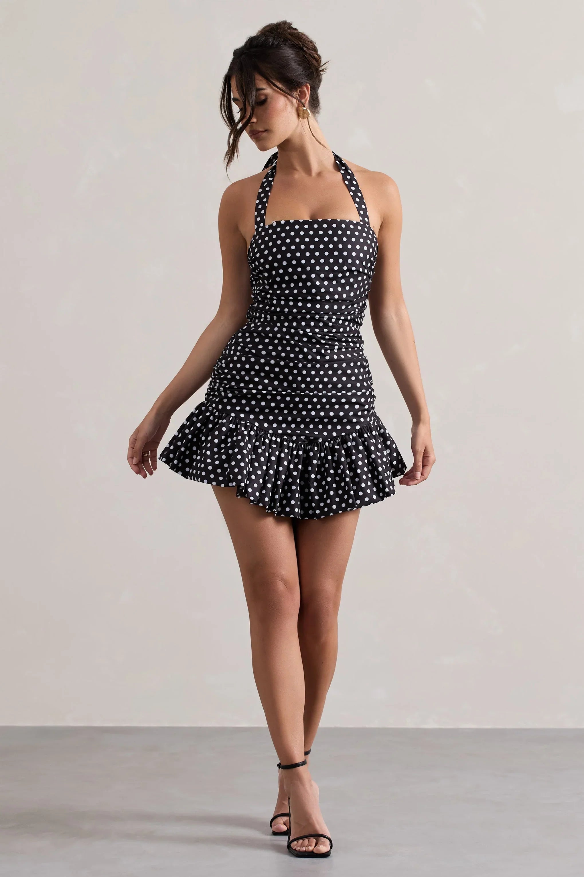 The piece everyone is after this season, our Zahra mini dress is a must-have. Arriving in an elegant black polka dot print of a premium taffeta, Zahra boasts a halter neckline with a ruched bodice and voluminous ruffle hem. Style this mini with some strappy stilettos and a tousled bun for the perfect day to night look this summer.
